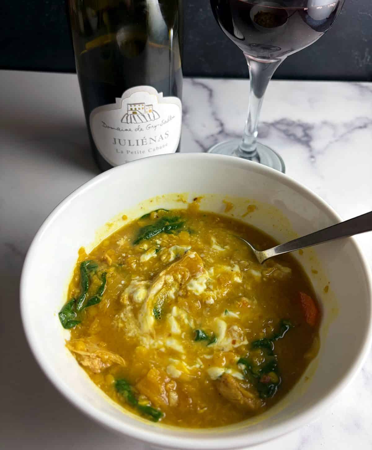 I’ve made this chicken and red lentil soup several times, and was excited to try a Beaujolais I had on hand with it. As I suspected, it was a great pairing for the soup!