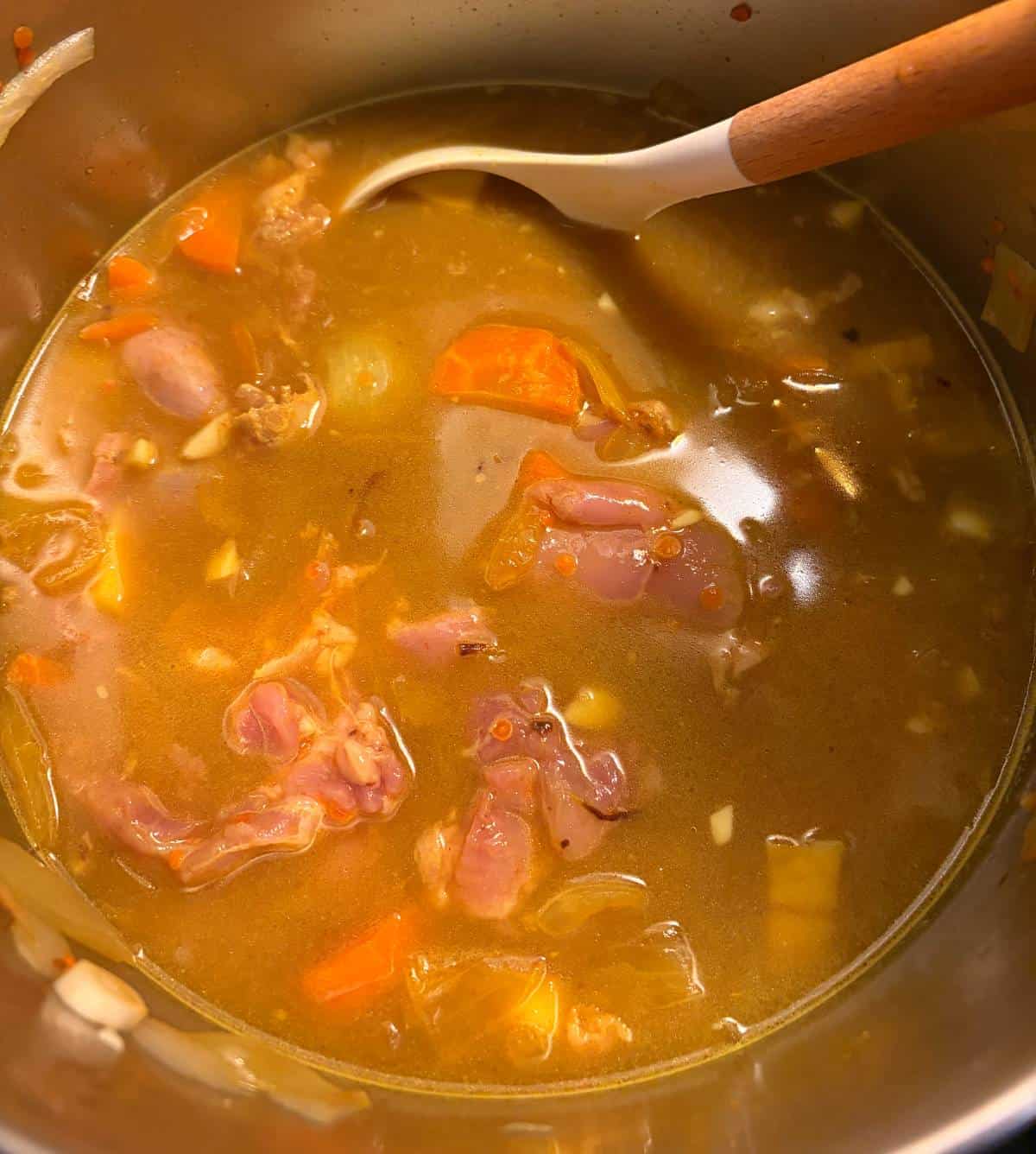 OK, let’s take a look at some of the chicken and lentil soup making steps.