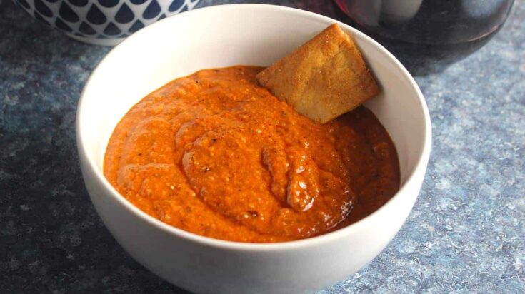 Smooth, flavorful, and vibrant red in color, this roasted red pepper dip adds a festive touch to any holiday appetizer spread and pairs beautifully with crackers or vegetables.