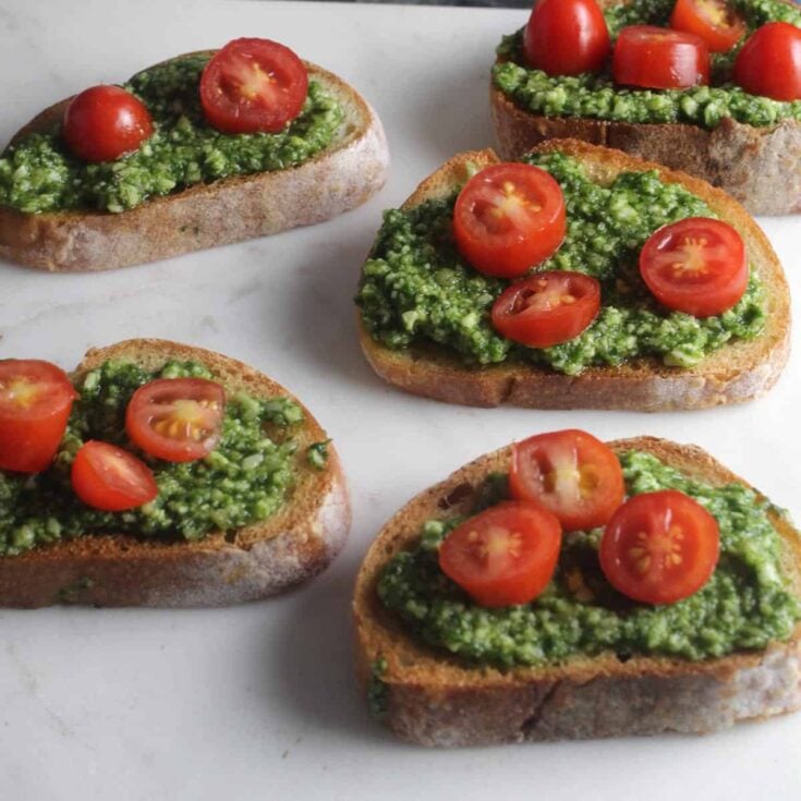 Crisp crostini topped with fresh basil pesto and cheese make an easy, crowd-pleasing appetizer that’s perfect for Christmas gatherings and casual holiday entertaining. Sauvignon Blanc and Vouvray make good wine pairings for the crostini, and you could go with a number of Italian white wines, too.