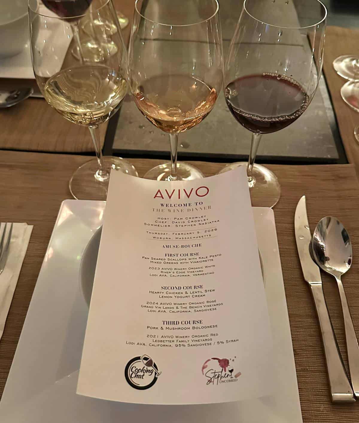 Both of these dinners and pairings sound amazing! Your menu is beautiful! I was unfamiliar with AVIVO, but I love their philosophy! We need to get out to explore Lodi, and I will look them up!