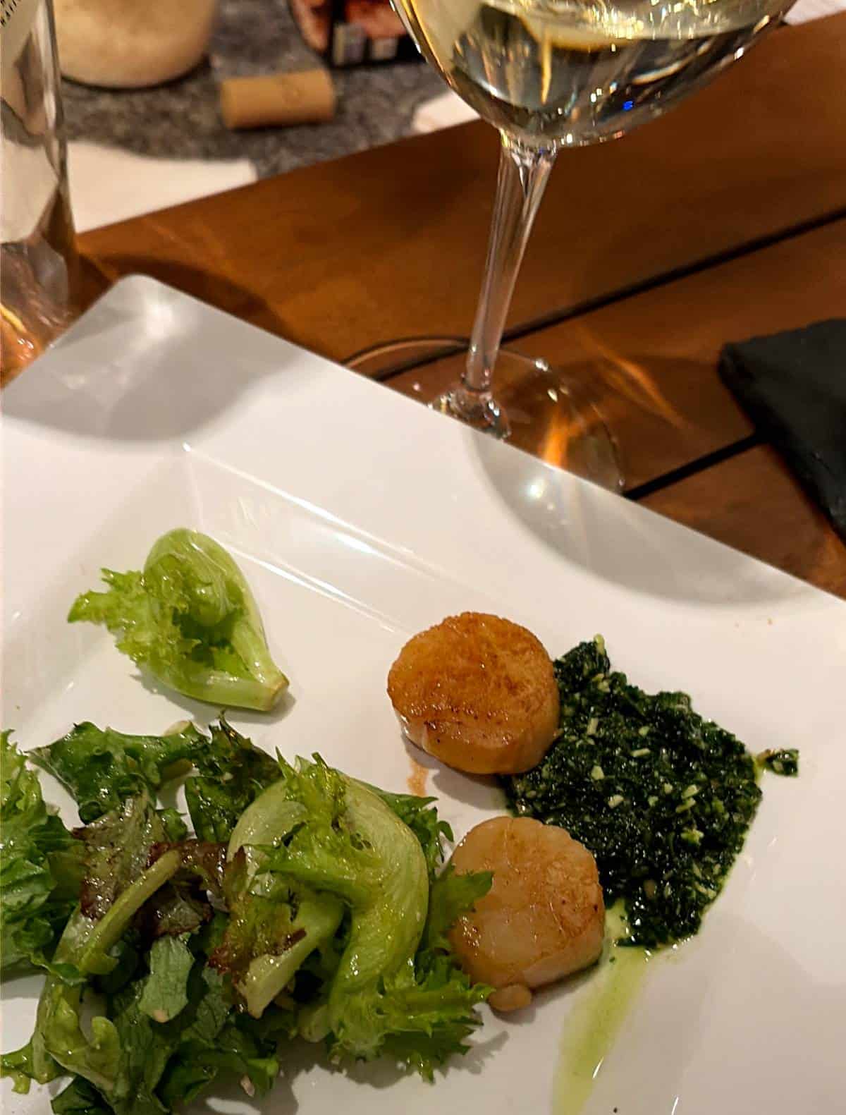 First Course: Pan-Seared Scallops with Vermentino