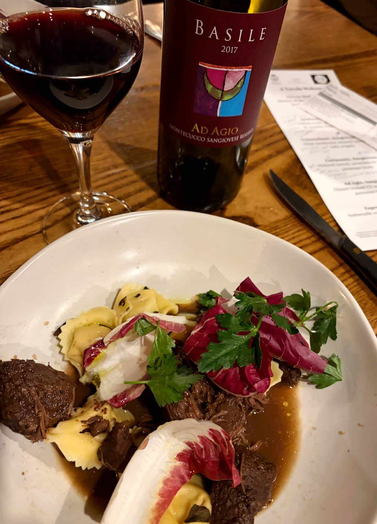 The Sangiovese was a good quality example of the grape, with a bit more fruit-forward character than some Italian Chianti. That fruit played nicely with the savory elements of the sauce, while the structure of the wine helped balance the richness of the dish. It made for a fitting finish to the meal.